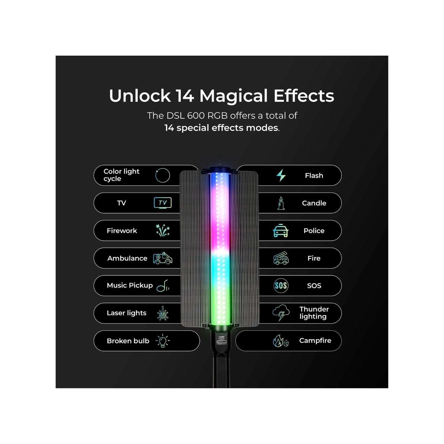 The DSL-600 RGB Stick Light offers app-controlled lighting, providing you with convenient and customizable illumination options for your creative projects.